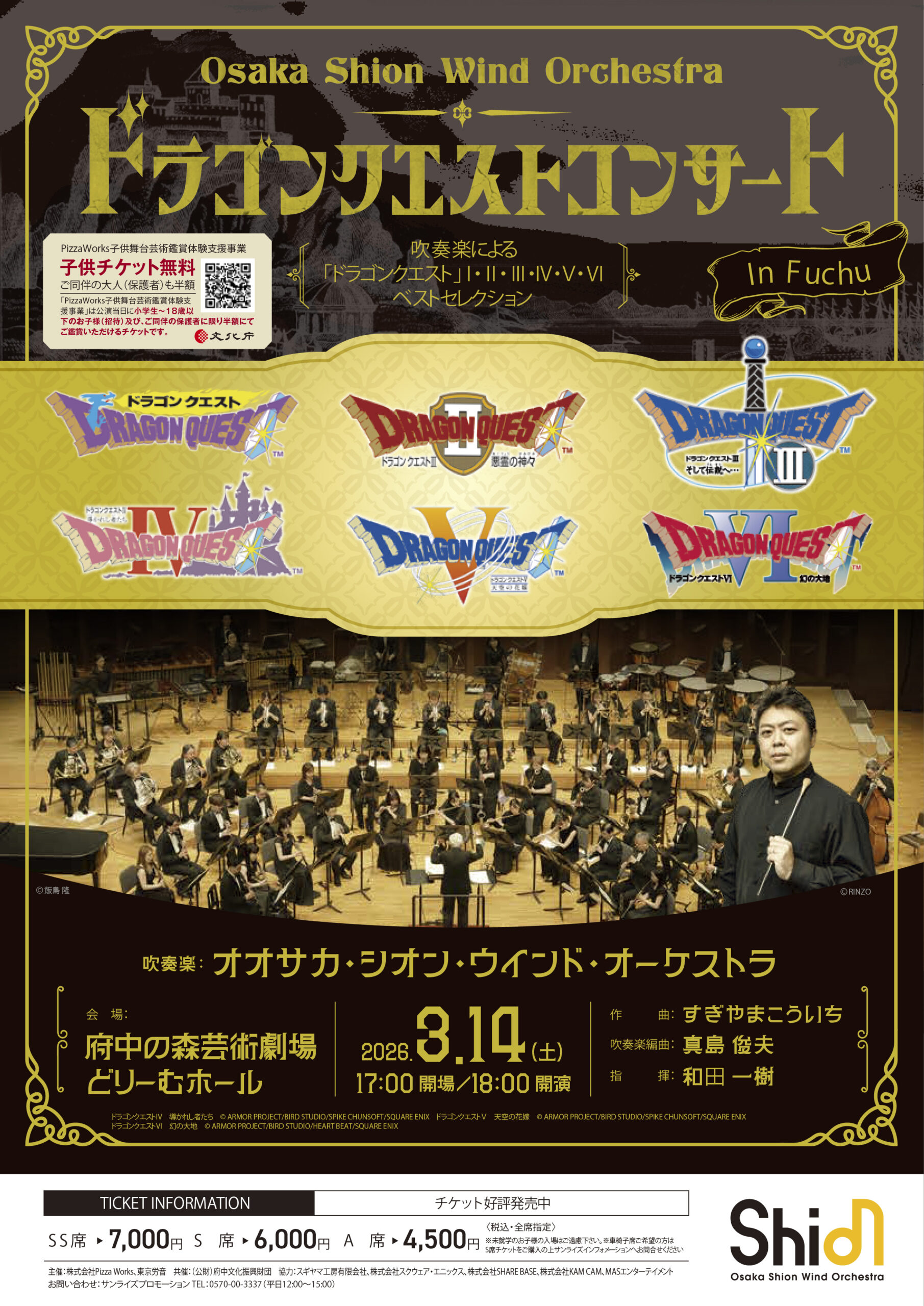 文化庁子供無料招待あり!2026.3.14(Sat)Osaka Shion Wind Orchestra ドラゴンクエストコンサート in府中 吹奏楽による「ドラゴンクエスト」Ⅰ・Ⅱ・Ⅲ・Ⅳ・Ⅴ・Ⅵ ベストセレクション